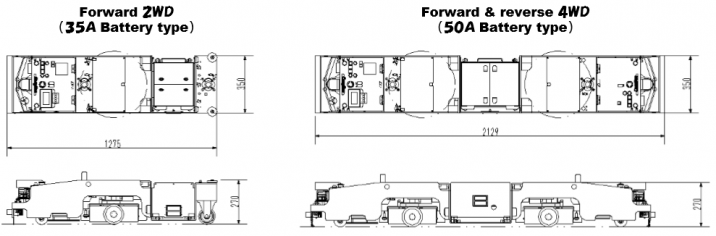 | Length x Width x Height | Forward: 1275*×350×272, Forward and Reverse: 2014*×350×272 (mm) *Case of 38A battery |